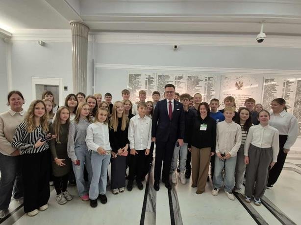 Podczas zwiedzania budynku Sejmu spotkaliśmy się z panem posłem, który opowiedział o swojej pracy, obowiązkach oraz o funkcjonowaniu parlamentu. Uczniowie mieli też niepowtarzalną okazję zobaczyć Marszałka Sejmu Szymona Hołownię.