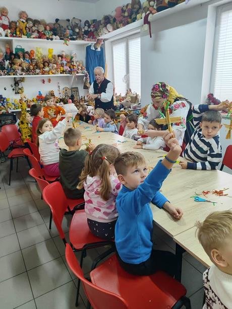 Wszystkie dzieci stworzyły ozdobę choinkową - Aniołka, zrobioną ze słomy i tradycyjnego wiązania.