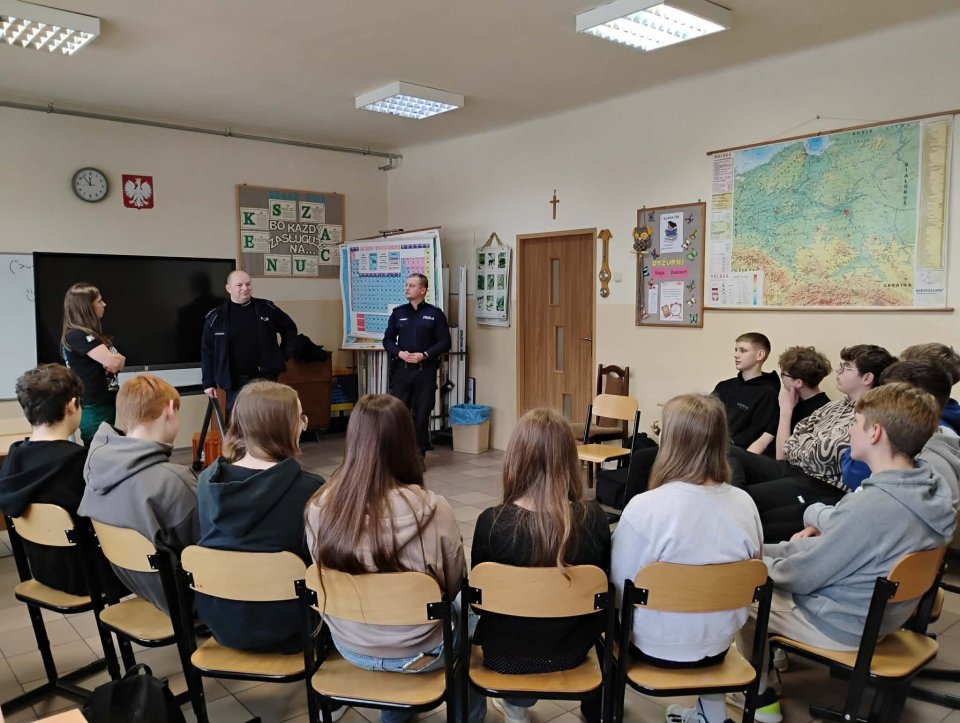 Podczas spotkania policjanci wyjaśnili, jaką odpowiedzialność karną ponoszą osoby nieletnie oraz uświadomili uczniom, że błędy popełniane w wieku młodzieńczym mogą mieć konsekwencje w dorosłym życiu. Funkcjonariusze podkreślili również, że wagary, spożywanie alkoholu oraz niewywiązywanie się z obowiązku szkolnego przez osoby nieletnie mogą skutkować postępowaniem przed sądem rodzinnym.