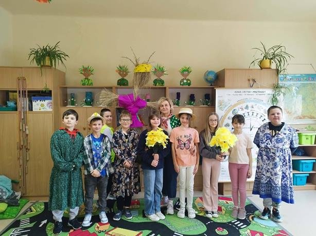 W piątek 20 marca uczniowie oddziału przedszkolnego oraz klas 1-3 spotkali się aby pożegnać zimę spacerując z Marzanną, śpiewając wiosenne piosenki, a swoimi kolorowymi, wiosennymi strojami dali zimie do zrozumienia, że bardzo cieszymy się, że możemy powitać wiosnę.