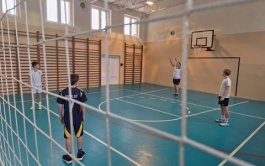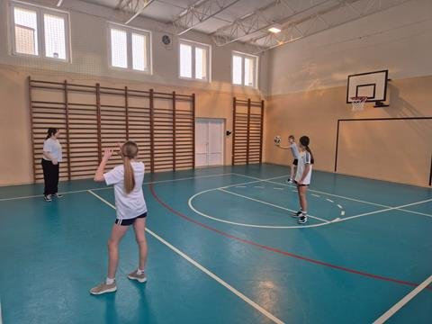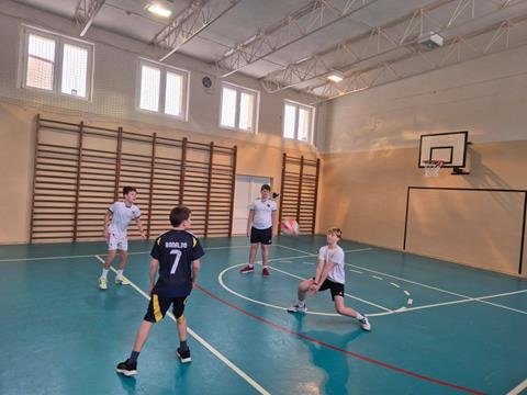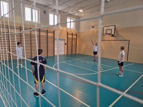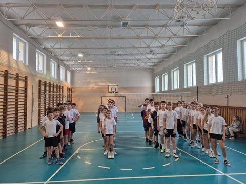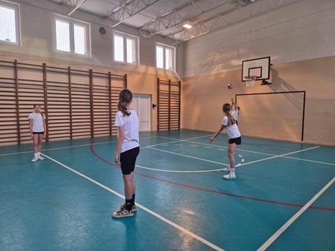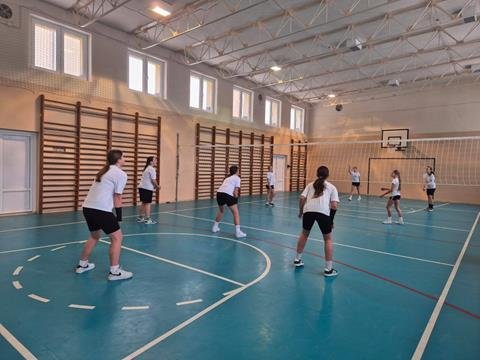 Sparing w Piłkę Siatkową z uczniami ze szkoły podstawowej w Kurdwanowie.