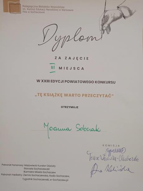 Udział w XXIII edycji konkursu powiatowego ,,Tę książkę warto przeczytać".