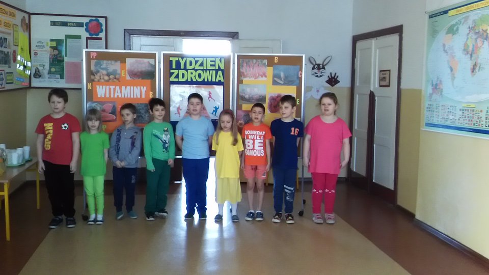 W czwartek uczniowie klasy III przygotowali „Dzień Marchewki”. W ciekawej prezentacji multimedialnej zachęcali do jedzenia najbardziej popularnego warzywa w naszym kraju. Na koniec wszyscy zostali poczęstowani pysznym sokiem i ciastem marchewkowym, upieczonym przez rodziców. W piątek uczniowie klasy 0 przygotowali wesołe przedstawienie na temat zdrowotnych walorów jabłek. Pięknie recytowali wierszyki, śpiewali piosenki, a nawet tańczyli. Na zakończenie tak niezwykłego tygodnia nastąpiły gorące podziękowania dla uczniów i wychowawców za ich zaangażowanie. Były też dla wszystkich wspaniałe nagrody – plecaki i poduszeczki podarowane przez Okręgową Spółdzielnię Mleczarską w Łowiczu.