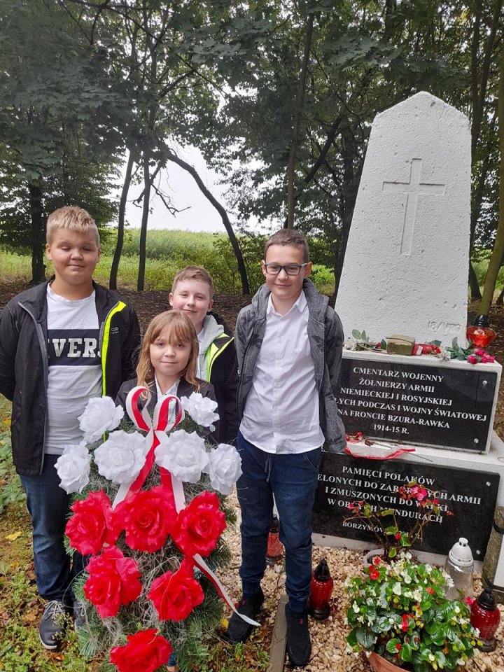 Uczniowie ze Szkoły Podstawowej im. Jakuba Kopacza złożyli kwiaty na cmentarzu w Borzymówce. Tu, na terenie Gminy Nowa Sucha znajdują się mogiły żołnierzy, którzy walczyli w obronie naszej Ojczyzny podczas I wojny światowej. Uczniowie po raz kolejny usłyszeli o tej strasznej zbrodni dokonanej 105 lat temu. Wtedy to Niemcy 31 stycznia 1915 roku użyli pod Bolimowem broni chemicznej. 31 maja 1915 roku między Bolimowem, a Sochaczewem dokonano kolejnych ataków z użyciem chloru. Wojska Niemieckie z 12 tys. butli wypuściły w kierunku rosyjskich okopów ponad 240 ton tej zabójczej substancji. Zginęło 9-11 tys. żołnierzy. Co czwarty z nich był Polakiem.