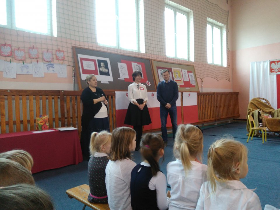 Aby w sposób szczególny uczcić tak niezwykłą rocznicę, nasza szkoła zorganizowała Gminny Konkurs na Portret Józefa Piłsudskiego. Prace rysowane i malowane złożyły wszystkie szkoły z Gminy Nowa Sucha, a I miejsce zajęła Aleksandra Wojciechowska ze S.P. w Kozłowie Biskupim. W organizacji konkursu, którego koordynatorkami były panie M. Wagner – Szczepańska i U. Gawłowska, wsparł nas dyrektor GOKSiR-u w Nowej Suchej p. Ireneusz Łukawski. Nagrody i wyróżnienia za powyższy konkurs zostały wręczone w czasie uroczystego apelu 9 listopada, a zgromadzeni na uroczystości mogli podziwiać wystawę nagrodzonych prac.
