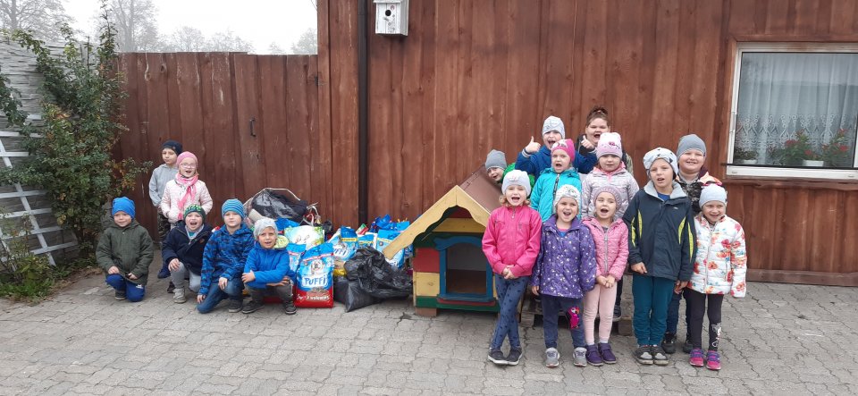 Panią Romualdą Trzcińską i Panią Agatą Majorek odwiedziły schronisko dla zwierząt "Psiakowo" w Piotrowicach koło Łowicza. Dzieci z oddziału przedszkolnego zebrały najwięcej karmy dla bezdomnych psów i kotów i w nagrodę pojechały na tę wycieczkę. Zawiozły zebraną karmę, koce, zabawki i zobaczyły, jak wygląda życie zwierząt w schronisku. Dowiedziały się, że w miejscu tym schronienie otrzymało ponad 300 psów. Dla naszych uczniów wizyta ta była dużym przeżyciem. Od najmłodszych lat trzeba bowiem zaszczepiać u dzieci miłość i szacunek dla zwierząt. Trzeba im wpoić wiedzę, że posiadanie zwierzątka w domu to nie tylko przyjemność, ale i wielki obowiązek. Odwiedziny były bardzo pouczające. Wszystkich skłoniły do refleksji nad losem zwierząt.