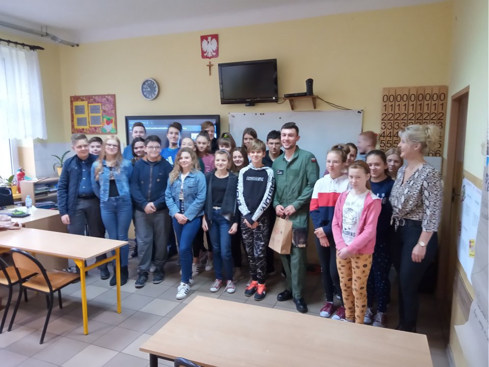 W dniu 29 listopada, w ramach doradztwa zawodowego, uczniowie klas 7 i 8 spotkali się z Danielem Frankowskim, absolwentem Ogólnokształcącego Liceum Lotniczego w Dęblinie a obecnie studentem Lotniczej Akademii Wojskowej.